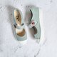 甜美风格的玛莉珍鞋, 用水洗帆布纯棉质感, 搭配简单的白T牛仔短裤, 或是浪漫裙装, 气质女孩的最爱鞋款! 也可穿搭图案短袜呈现妳的与众不同。 透气鞋面, 真皮鞋垫, 防滑橡胶, 台湾手工制造。