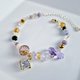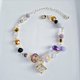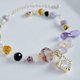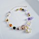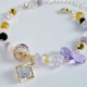 以闪耀着光芒的酒红色蜻蜓珠,以及散发着成熟淡紫色调的粉色紫水晶搭配黄水晶迷你碎石,中间点缀着一颗闪耀着光芒的仿锆石方形坠饰,构成这款别致的手链。