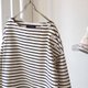 JULY BY AKKA --sholder button boat neck pullover Border boat neck pullover with shoulder button from JULY BY AKKA. This is a pullover made from a border tengu that is perfect for spring and has an attractive dry touch. Three silver buttons on the left shoulder are points! Border tops that tend to be boyish A boat neck design with a clean neckline that you can wear like a woman * 9-sleeve sleeve with a drop shoulder design. It is recommended to match with a simple bottom such as wide denim or denim skirt. This item is free size. ▼ Wearing model: 158cm / size: F ※ This product is sewn with AKKA EM STUDIO. size Dress length 54cm Width of the body 55cm Shoulder width 57cm Sleeve length 40cm Hem width 52cm * Please note that some errors in size measurement. Material cotton 100% Origin / production method Origin: Japan Handmade