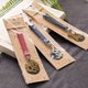 **图形吊饰,可自行取下搭配设计;结合皮绳,变身文青风绑书带**