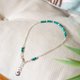 925银脚链,搭配心形吊饰和孔雀石珠。这款925纯银脚链是送给亲朋好友或任何处女座、金牛座、射手座人士的完美礼物。心轮。