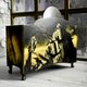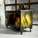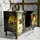 一个方便的办公室和小东西的立场是用剪纸技术装饰的,里面涂有深绿色丙烯酸漆,装饰是彩色玻璃丝带和大量的红色手工玫瑰。