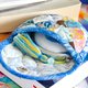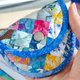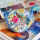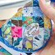 The mirror comes with cute patchworked cover that closes with a snap. The cover is made of small squares of fabric and quilted.