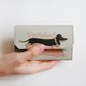 - 1983ER全手制 , 一手可掌握的小纸包 , 随身携带方便轻巧卡片零钱包,不使用动物成分材料制作,送礼自用皆适合。 可爱的黑腊肠狗拿在手上让你开心整天