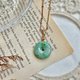 ►翡翠平安扣圆滑顺畅,寓意事事圆满、事业一帆风顺,家庭幸福美满。