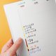 浅色的印刷让上面的时间轴数字显得低调,用不到周计划的时候当成格子页笔记使用也很好。(图片示范的是用来当作纸胶带搜集页)