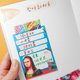 进入“月计划”总共有六款不一样的图案,每个图案会轮流出现两次。月计划的左边有代办事项栏位可以打勾勾,下方也有备注栏可以写一些小笔记。这次多安排了日期格,让填写日期的位置再明确一些;每日上方一样保留了填写当日重点事项,或是左右相连可以写下旅游等等连续性的时间规划。最下方有一长条对话筐,可以写下这个月的目标!
