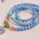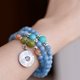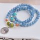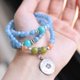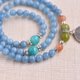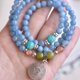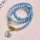 深邃海蓝宝+天河石+莲花吊牌纯银三圈手链