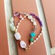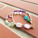 水晶部分为:绿玉髓,天河石,葡萄石,内有彩虹折射晶透紫锂辉,彩虹光拉长石,紫黄晶刻面,紫水晶小颗粒,米型珍珠。