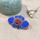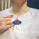 【点翠介绍】 为中国古代历史悠远的极致工艺 取翠鸟的鲜艳羽毛,光采亮丽的色泽制成精致珠宝 只有王公贵族或即将出嫁的仕女才有资格拥有 现今因为翠鸟稀少,点翠师以天鹅羽毛再现点翠之美 将细致如发的天鹅羽毛,手染翠蓝色 悉心裁剪后镶嵌于镀金黄铜底座、手工掐丝 搭配天然宝石、新颖设计 将这灵蓝逸动的美丽,延续到妳我的日常~ 【材质】 黄铜镀金、羽毛、天然红玛瑙蛋面 尺寸:宽50 高33mm 【产地/制造方式】 Taiwan Design/ Handmade in China