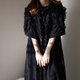 袖口拼接透肤蕾丝与蝴蝶结抽褶,