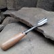 Forged gouge chisel for wood carving, especially useful for working in hard-to-reach places. Such a chisel differs from other tools in the length of the “rod”, this is its advantage when working in various recesses. If you need to cut out places that a regular chisel can't reach, then this gouge chisel is what you need.
