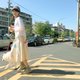 ✦版型故事:腰间打折修饰腹部,圆裙的设计让米白的棉麻布料更有优雅味道: