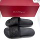 **40号全新Ferragamo黑色真皮马鞍LOGO拼软胶凉鞋拖鞋 居家生活渡假**