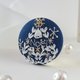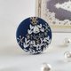 由于是深蓝色底布搭配白色刺绣,这款配饰非常容易作为穿搭的点睛之笔。