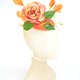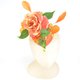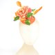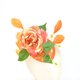 以泪滴状的基底,点缀着橘红色调的丝质玫瑰、造型羽毛及叶饰。