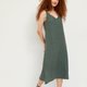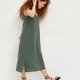 夏季女士宽松亚麻吊带裙,前后皆为 V 领设计,搭配细肩带。是夏日理想的选择。细肩带设计,简约风格,提供五种(5)时尚色选。长度及膝以下,属于中长裙。