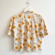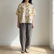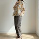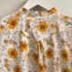衬衫采用白色棉质布料,点缀着黄白相间的碎花图案。