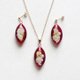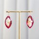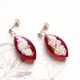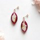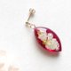 以醇厚的红宝石红为背景,点缀着花朵、珍珠和金属珠,是一款楚楚动人的耳环。