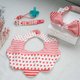 - 特别为女宝设计的弥月礼盒,包含花瓣造型口水巾、蝴蝶结发带以及奶嘴夹,有了这组礼盒,妈妈在月子中心若想拍摄宝宝照片,几乎皆可拍上用场喔。