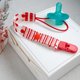 可使用一般奶嘴及香草奶嘴,也可当玩具夹。两段式的长度设计,满足不同功能需求,长度为17与14厘米(不含弹性绳与夹子)