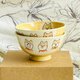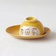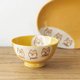 以传统遮盖法结合喷釉工艺呈现的撞色釉彩,让黄白色块自然交错、层次分明,视觉上更添设计感。来自爱知濑户市的工匠之家,擅长创作疗愈与可爱的手工陶瓷器,将可爱俏皮的柴犬生动地描绘于碗及盘身,表情丰富,每个角度都充满趣味。