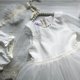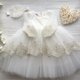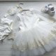 Hand made dress with gold lace, pearls, panties, shoes and headband for baby girl. Can be as first birthday, baptism, christening and flower girl dress. Also it can be as takehome dress or baby shower gift for baby girl. I can make receiving blanket for this outfit if you need. Your girl will have a great look in this dress.