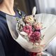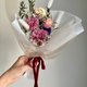 花束内容:带点个性的雾紫粉永生康乃馨,像是妈妈既温柔又坚韧的爱。(若搭配的花材缺货,设计师会挑选类似风格做更换);附赠一张手写祝福小卡。