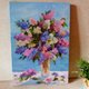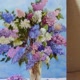 作品名称:《花瓶里的丁香》。花卉原创油画在拉伸画布上。尺寸 40 平方厘米 x 50 平方厘米,(16 英寸 x 20 英寸)。