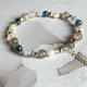 浓浓暗靛色交织着少许墨痕的魔鬼海蓝宝,搭配银月光石.拉长石.白玉髓与淡水珍珠,营造出多层次的柔和光芒,辉映着金色的月光