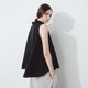 立领本来就是自带气场的一种设计细节,加上前短后长的伞状轮廓,让背心这种空气感很强的单品忽然变得很有存在感,自然而然便能引人注目。