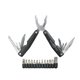 镍子(钢丝镍)、小刀、两种不同规格锯刀、螺丝起子、大/小平头螺丝刀、开瓶器等生活常用工具,此外,更特别的是附有套筒,可以更换12种不同规格的螺丝更换头,让您的工作更加省力轻松