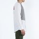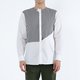 - 条纹立领拼接衬衫, 搭配斜口袋设计, 让拼接衬衫多一种视觉呈现。 前方的小反光骑士以及背后的红点贴布绣象征着我们对登山王的致敬。