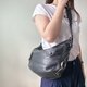 男女适用的Bally牛皮半月形手袋,石墨色皮革配上银扣,型格有个性。