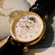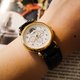 月相手表通常在表盘上拥有一个小型圆形窗口,并且在窗口内有一个月亮图案。透过表盘上的特殊机械设备,月相手表能够准确地显示出当前的月相,如新月、上弦月、满月和下弦月等。这是通过将机芯与一个特殊的齿轮系统相结合实现的。
