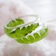 这款树脂戒指镶嵌着真实的蕨叶,100% 手工制作。时髦的镂空设计,让您可以将这枚戒指以三种不同的方式配戴(参考图二)。采用高品质的水晶环保树脂制成,再经手工抛光。