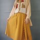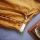 - 4.5 studio Handmade 设计商品 型→前片不对称设计/圈圈扣环装饰/单侧有口袋/附腰带 色→秋意浓芥黄 质→30年古董国产老布,布料有厚度挺度可单穿 无内里