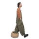后背X造形立体剪裁,裤子两侧各有一大立体口袋,钮扣开合,