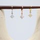 非常小巧且闪亮的独特蛋白石星形吊坠耳环。有金色、银和玫瑰金可供选择。此外,还提供外径 9.5 毫米或 12.5 毫米的箍。耳尖下悬挂着一颗小星星。