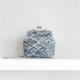 包身采用独特的菱形纹理印花棉布制作,布料表面沿纹理压线。衬里采用优质棉布提高整体品质,包身采用胶粘方式与口金固定。
