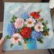 - 绣球花和牡丹画-手绘原创画。花卉原创艺术。色彩缤纷的原创艺术品。花卉印象派绘画 - 绘制在尺寸为 40 厘米 x 40 厘米的拉伸画布上。莲花壁画的侧面正面有艺术家的签名。