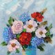绣球花和牡丹画,原创油画,拉伸帆布,尺寸为 40 厘米 x 40 厘米,由当代欧盟艺术家 Inna Bebrisa 手工制作。