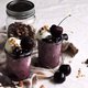 挖一球冰淇淋,淋上酸樱桃黑醋栗果酱上去,