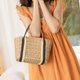 - 文青百搭万用小方包, 内里麻质束口袋好收纳, 手工草编藤编包手提包。