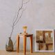 以台湾原木制成的椅凳,结合构树树皮布贴面, 构树自然生成的纹路与色泽,展现独特且充满生命力的作品。