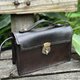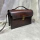 设计典雅,深棕色皮革带有独特的手工缝线,金属锁扣增添了年代感。这款包的风格适合搭配复古或休闲穿搭,给人一种经典耐用的感觉。手工皮革制品,经时间洗礼会产生独特的光泽与质感。