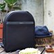 设计灵感来自简约主义,圆拱形设计令背囊更富现代感及线条美。细节上选用质感丰富的十字压纹牛皮及防水防的刮尼龙布料,时尚与实用性兼备。前置拉链袋让都市男士轻松收纳各类必需品。内格宽敞,设有独立空间摆放15’ Macbook及各类A4文件。多个内置口袋方便装载手机,名片及重要文件。配备为商务旅人而设的后置式的行李固定带。 皮革肩带可调整长度,并配备透气软垫,背起来舒适清爽。不论配衬平日上班或是假日造型都非常合适。
