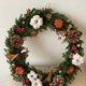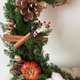 使用花材:日本永生松.松果.棉花.染色尤加利果.南瓜茄…。