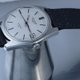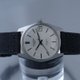 银白放射面盘,五点钟边缘轻微氧化,带日期。