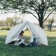 这款野餐帐篷,清爽露营情境的象牙白色做为主色调,设计为简便快速搭建,适合在公园或广场进行轻松的野餐活动,让更多人能够享受自然游憩的乐趣。